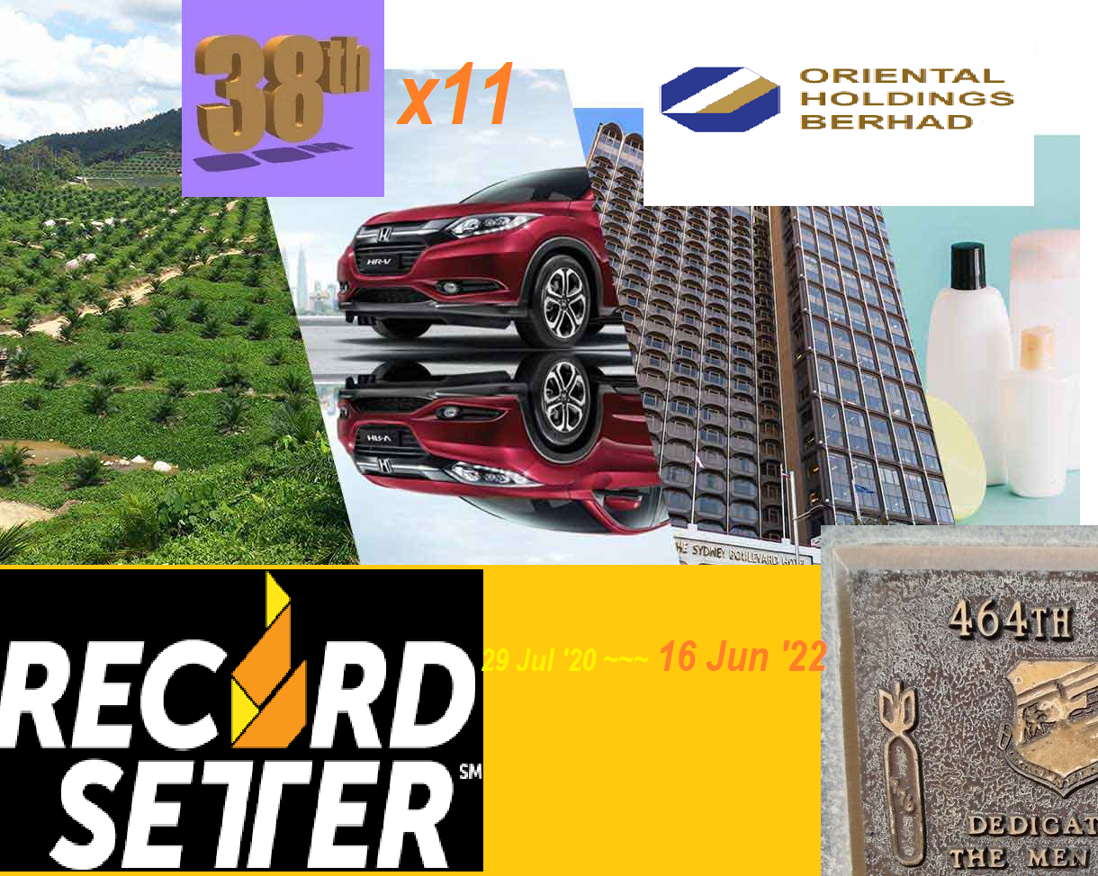 MPHB Capital, repurchased in the low $1.40 range recently, was resold in the $1.50 region for a hat3rick on #35, breaking the abovementioned 43-month-old record for the longest stockmarket run. Oriental continued its exit from an 8-year-old position with an 11th sale on the 16th & continued on to its 12th delivery on the 17th. S'pore-listed Chip Eng Seng rewarded a late '20 entry at around S$0.42 with an exit at S$0.48 on Monday the 20th for a record 466 days in a row. Petron then took back the baton on Tuesday 21 Jun when it went ex-dividend with a sale at around $5.50 for an 8th & final round. Fellow crude refiner Hengyuan Refining then assumed the role of winner #86 on the 22nd with a 9.6% gain over 2 days to bag 468 days, then handed the gauntlet back to #38 Oriental over the next 3 days for consecutive sessions #469 to #471, before new #87 PPB Group earned 2.6% return within 24 hours on Tuesday 28 Jun. Oriental was back in the proverbial driver's seat of the streak on the 29th for a 16th round to reach 473 days in a row. Kuchai then took the title of the 88th winner on the last day of June to set the 12th straight record!
